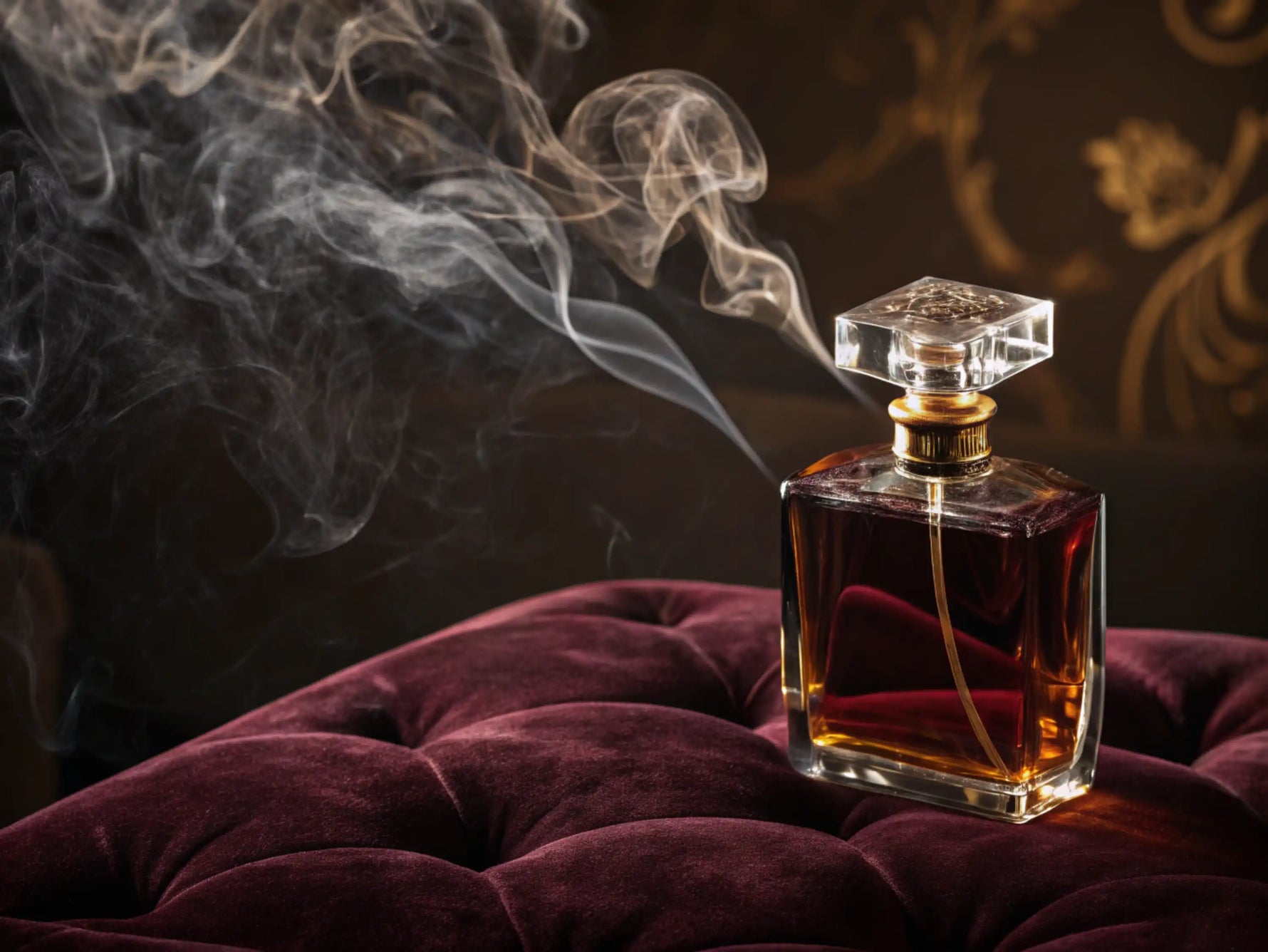 The fragrance settles into a deep embrace of oud, amber, and balsamic accords, leaving a magnetic trail.